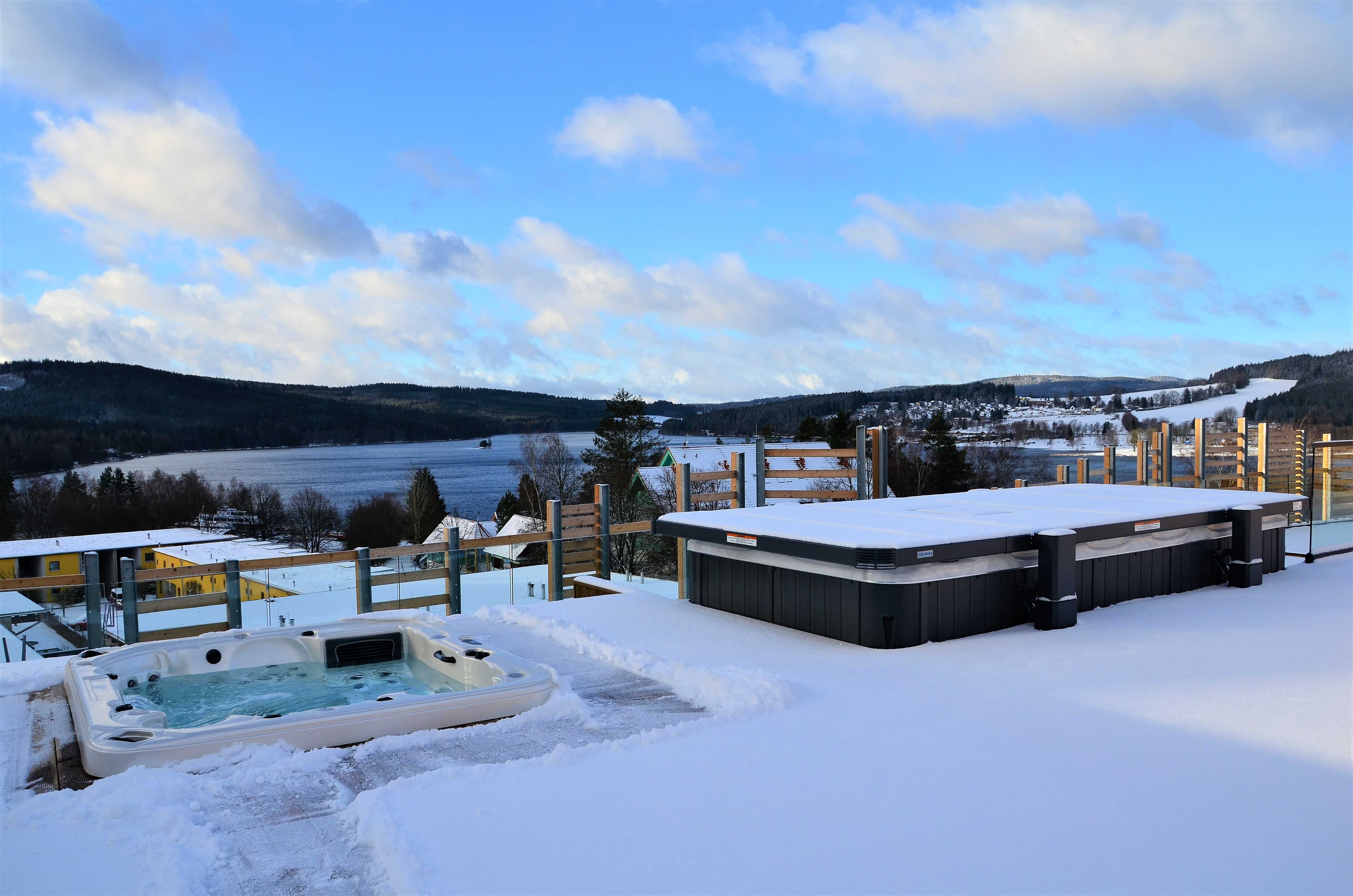 Varianta B- 30 minut venkovního whirlpoolu na střeše apartmánového komplexu s výhledem na Lipno